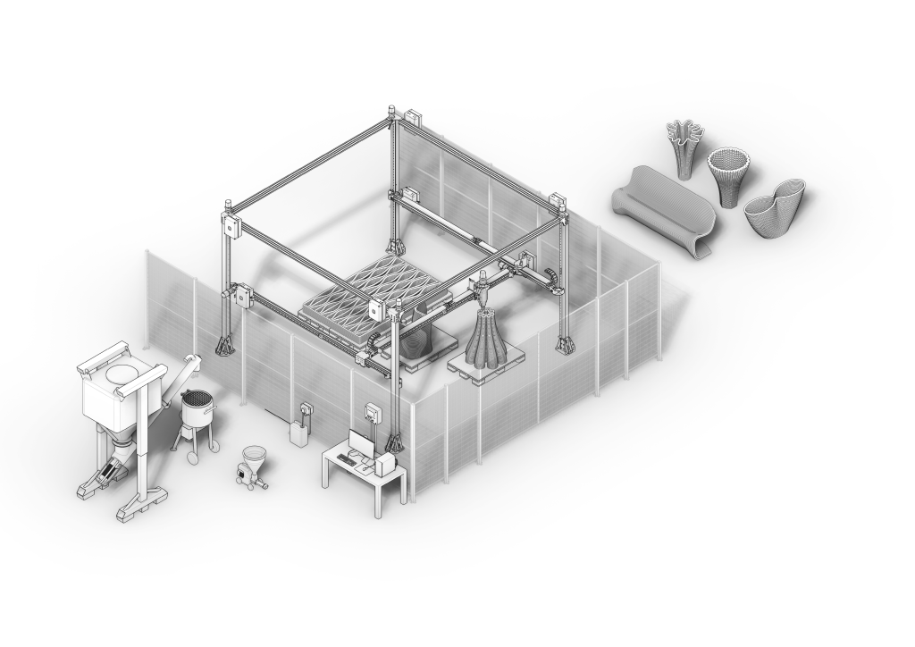 Tecnología de impresión 3D en hormigón para una construcción sostenible y certificable. Elimina encofrados y ofrece nueva flexibilidad de diseño.