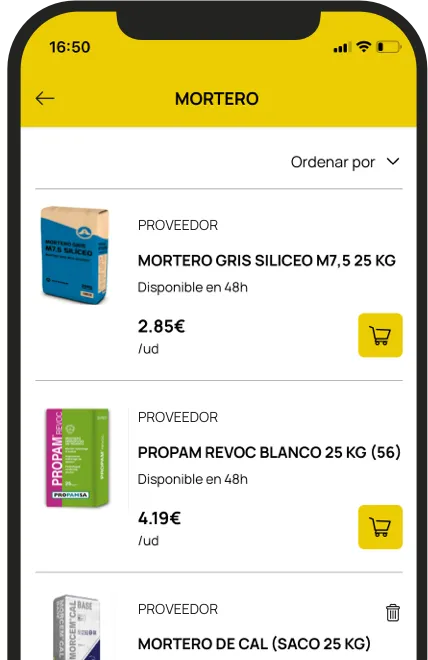 Plataforma digital para comprar materiales de construcción de forma eficiente y segura. Control en tiempo real y herramienta simple.